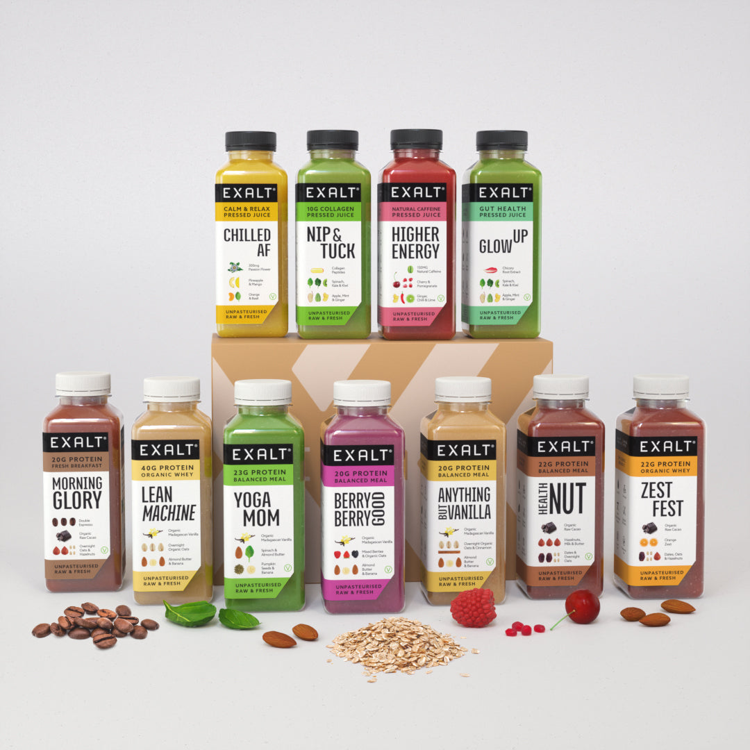 One of each of our award-winning fresh protein smoothies, all with a minimum of 20g protein and cold-pressed juice supercharged with natural botanicals along with two Performance Juice Shots.